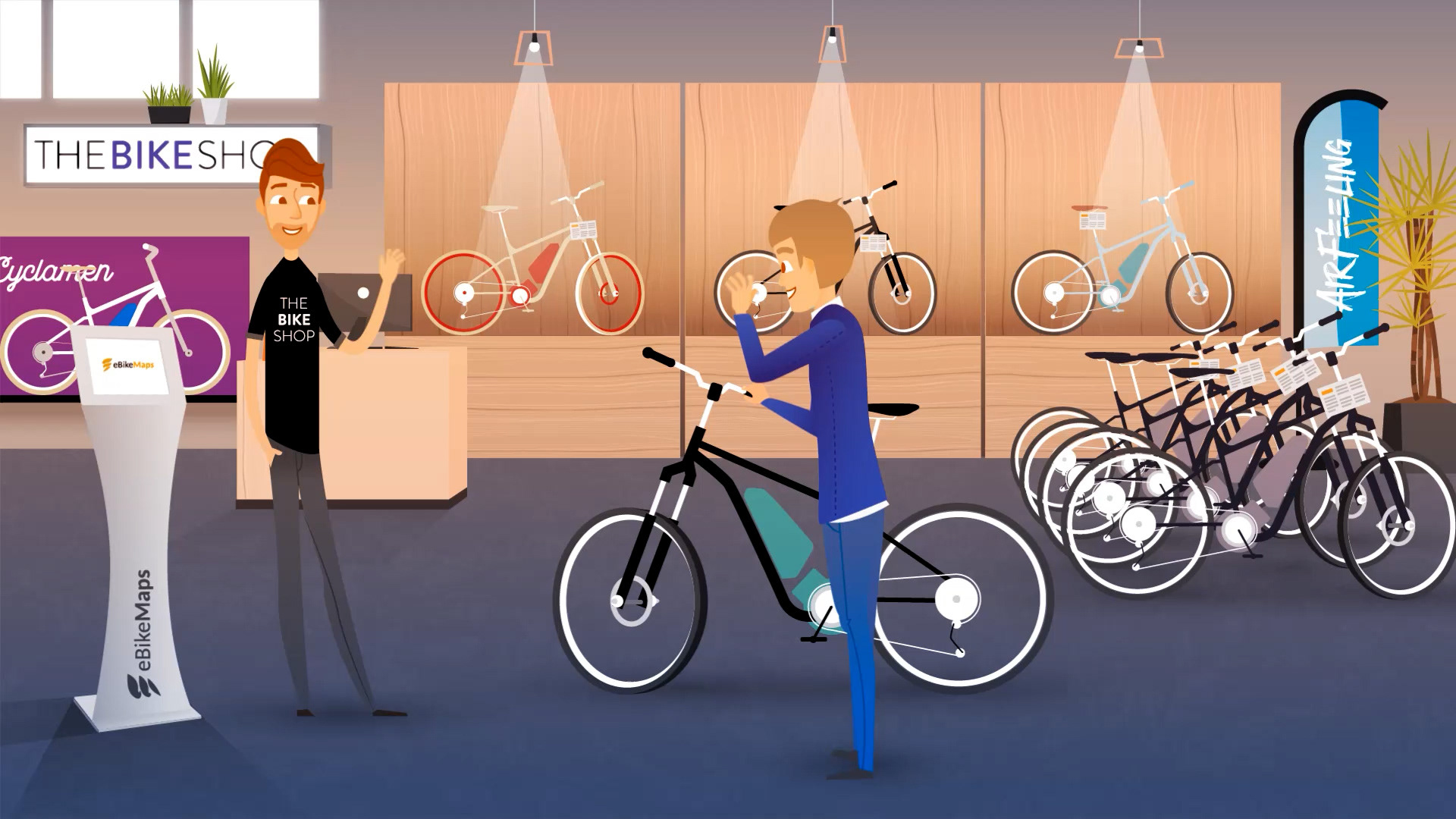 Illustrations pour un motion design sur le conseil en magasin pour les vélos électriques